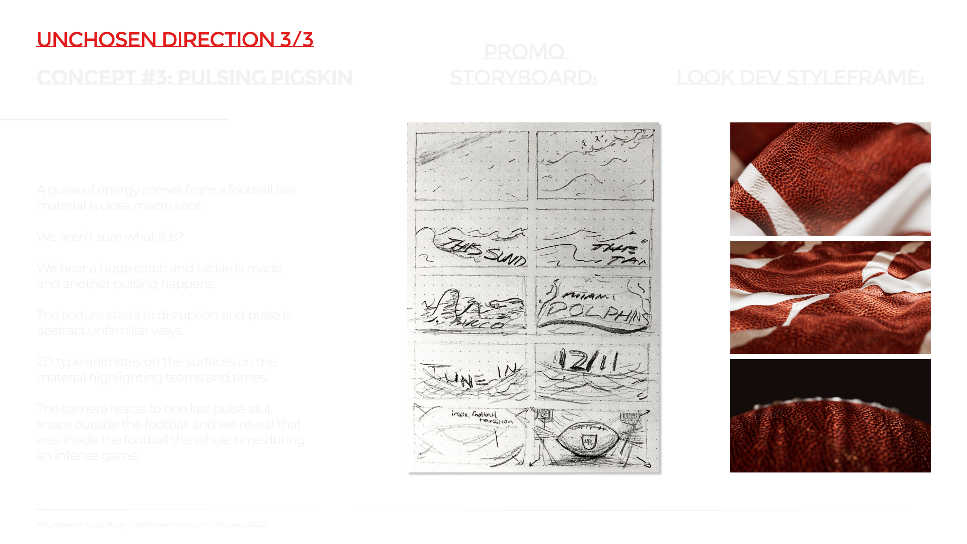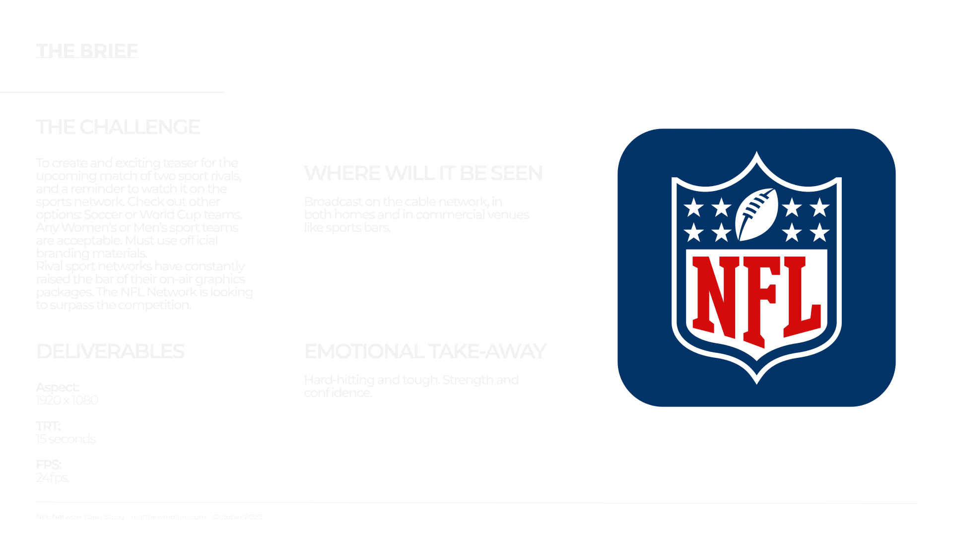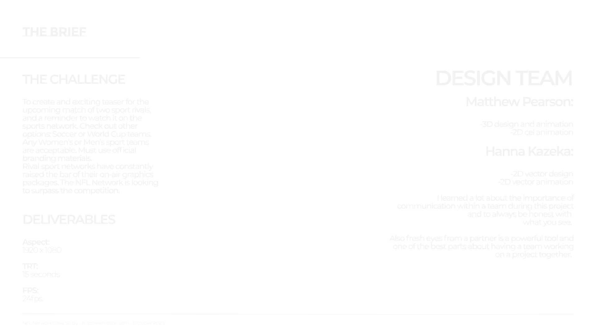 I love to make a good broadcast advertisement. I got to develop an upcoming match promo pitch for the NFL network and even voiced the SFX as well!